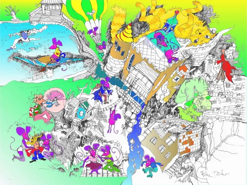 +Grafik: Magisches Katzenland +Grafik: 13mal Katzenleben +Wachsaquarell