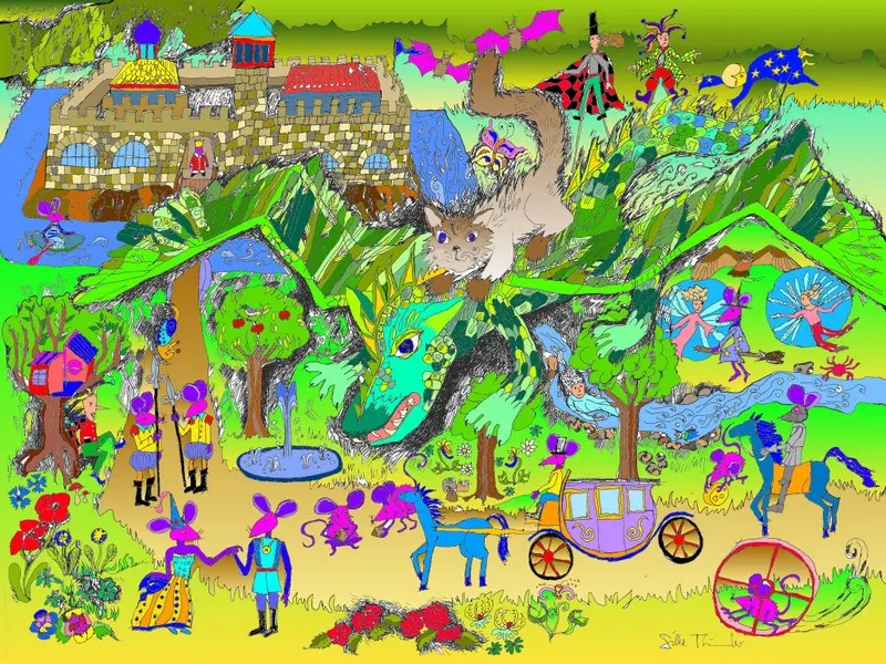 Katzen und Kater, die eintauchen in die phantastischen Welten des Märchenreichs und auf Drachen, Einhörner, blaue Pferde und viele andere magische Wesen treffen.